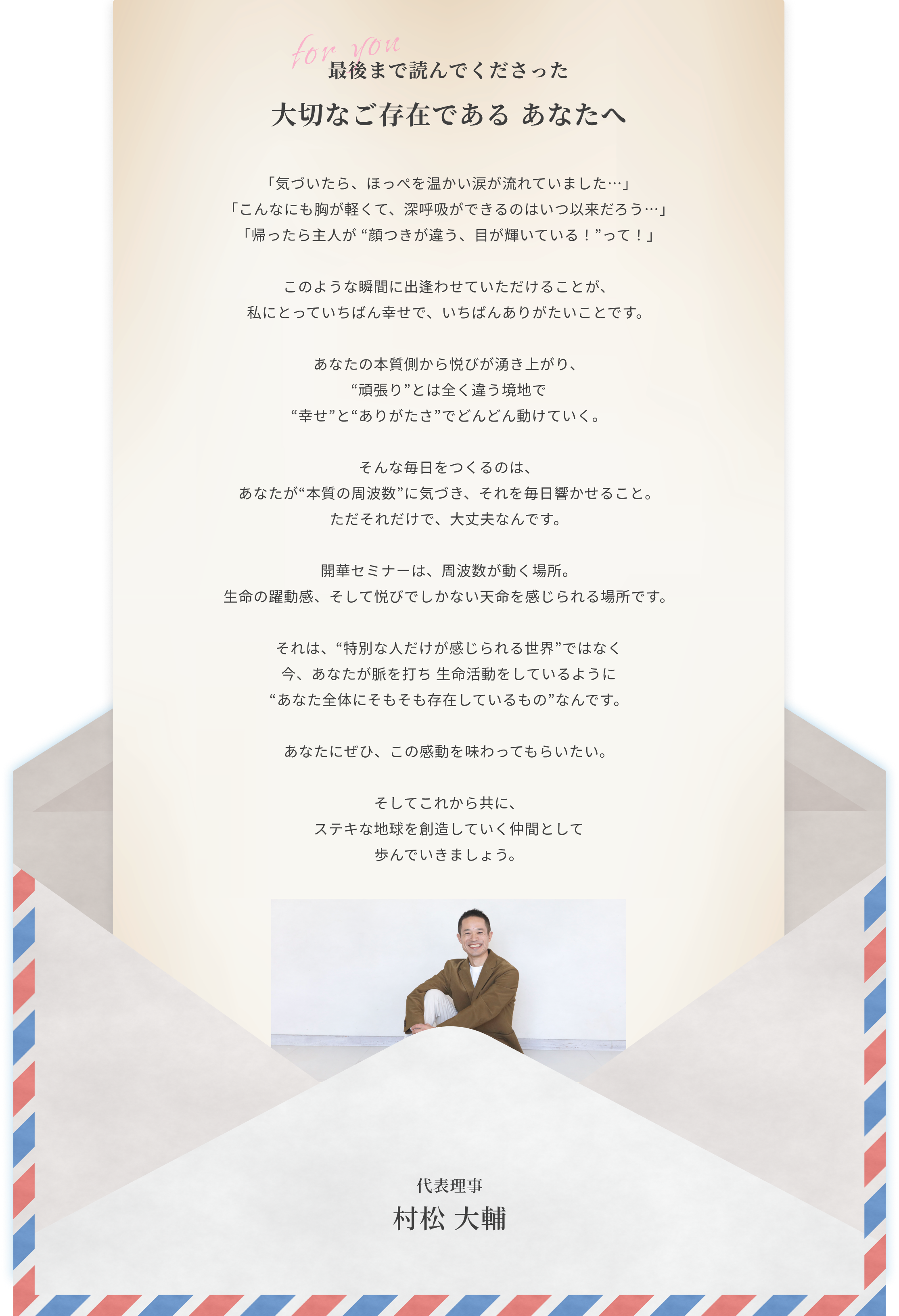 開華の学びを熟知した開華トレーナーと村松の対談動画をプレゼント。学びの活用方法をシェアさせていただきます。